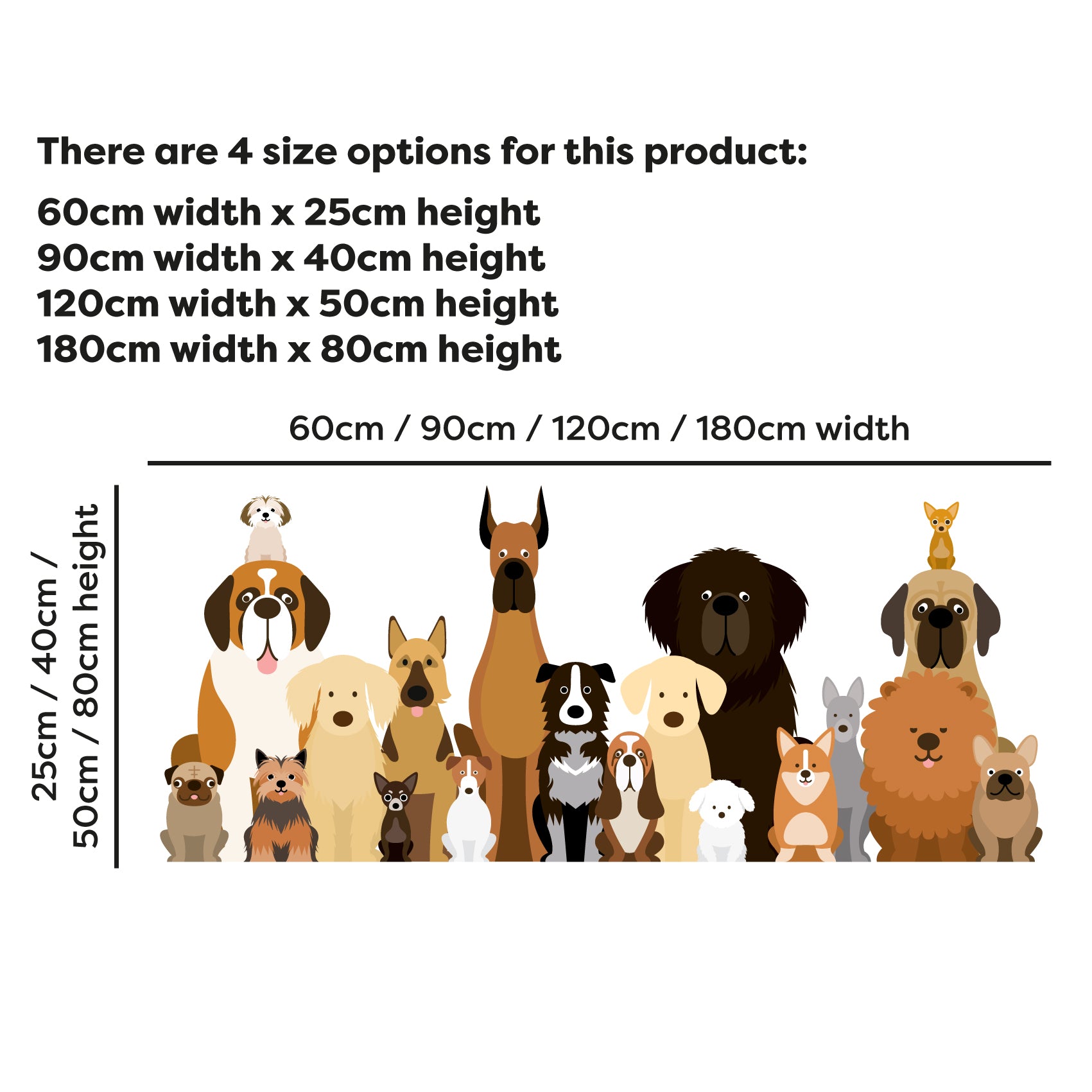 Contents: x1 Dog Wall Sticker - Big Group of Dogs Decal Wall Art (in your chosen size).