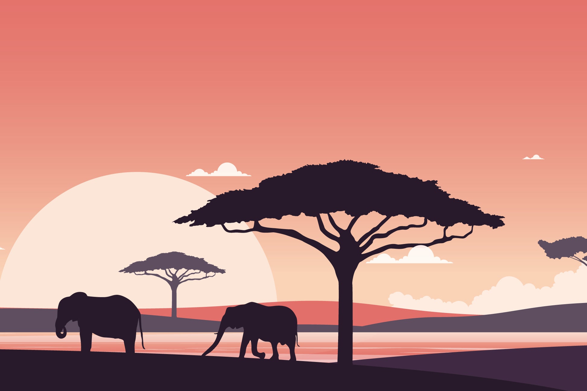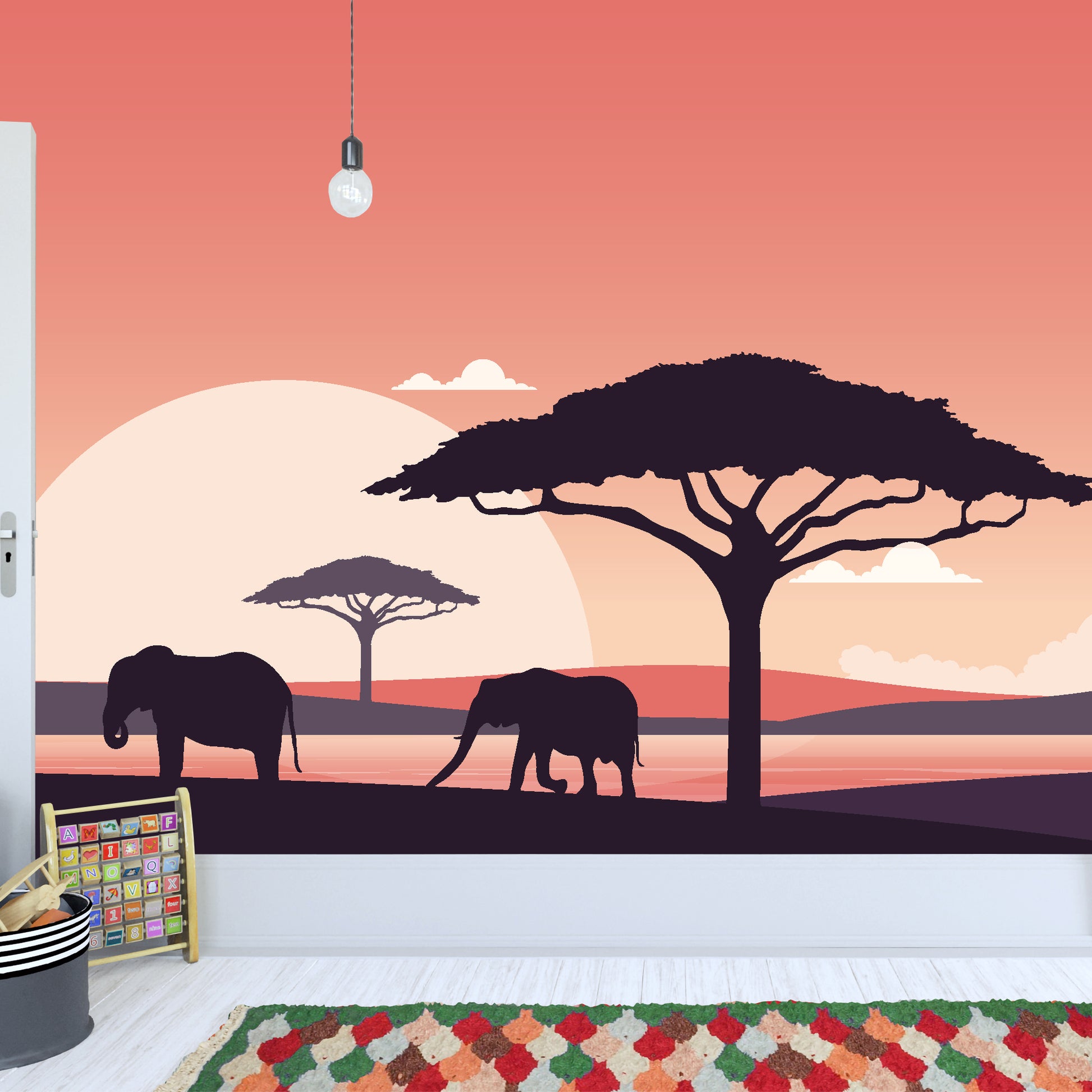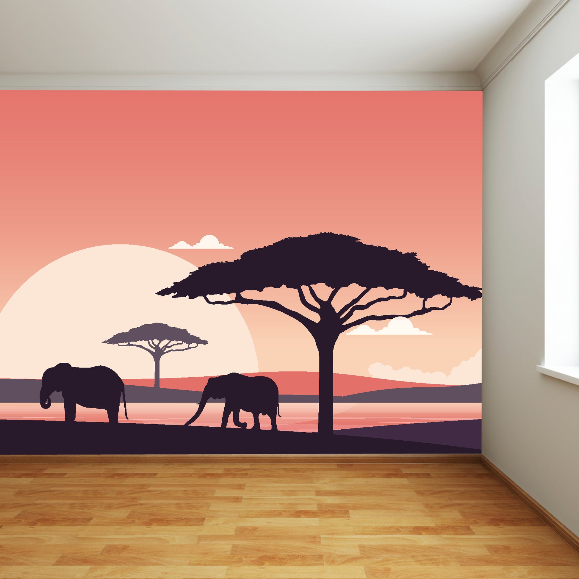 Contents: x1 Elephant Safari At Sunset Full Wall Mural (in your chosen size).