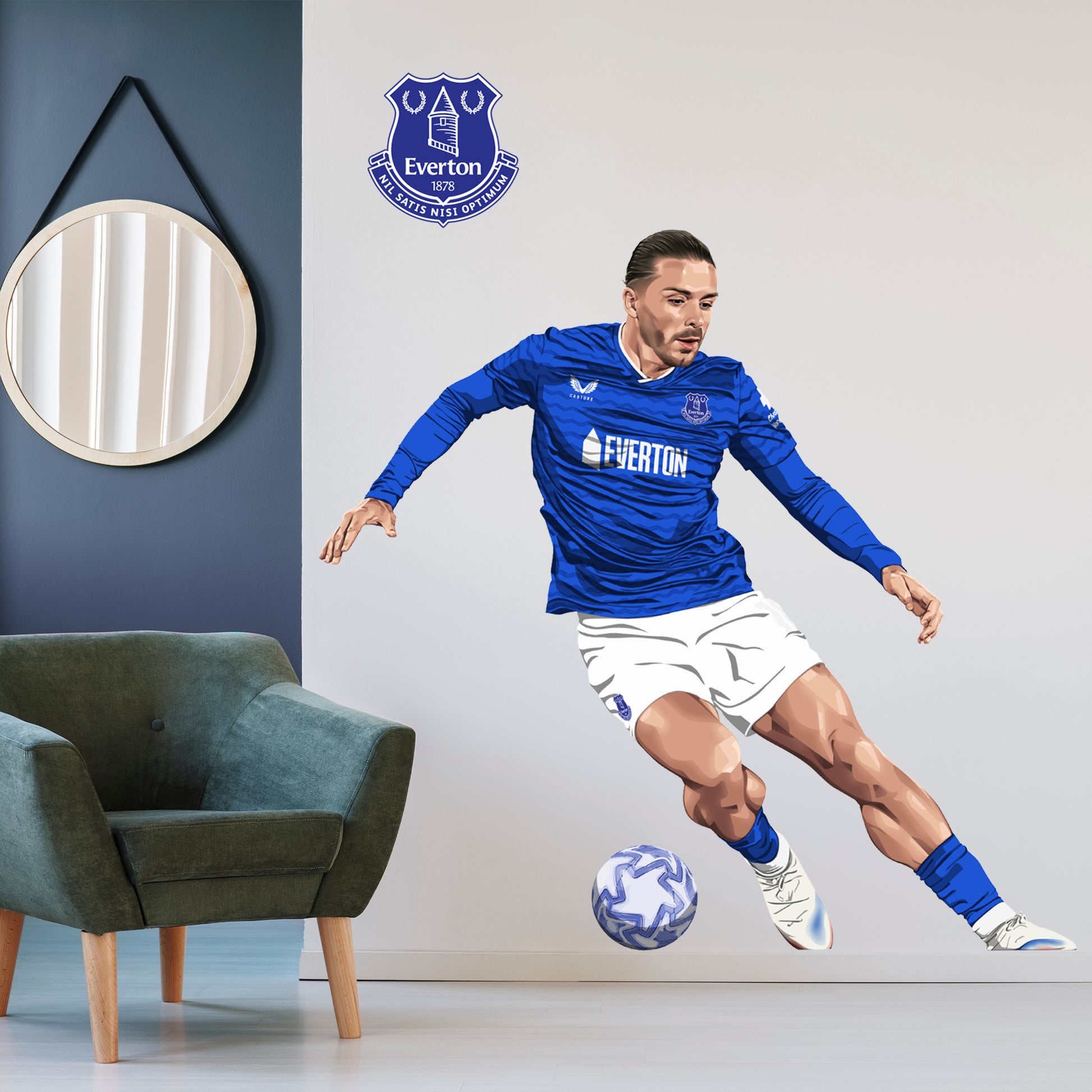 Contents: x1 Official Everton Football Club Grealish 25/26 Illustration Wall Sticker (In your Chosen Size), plus Fitting Instructions.