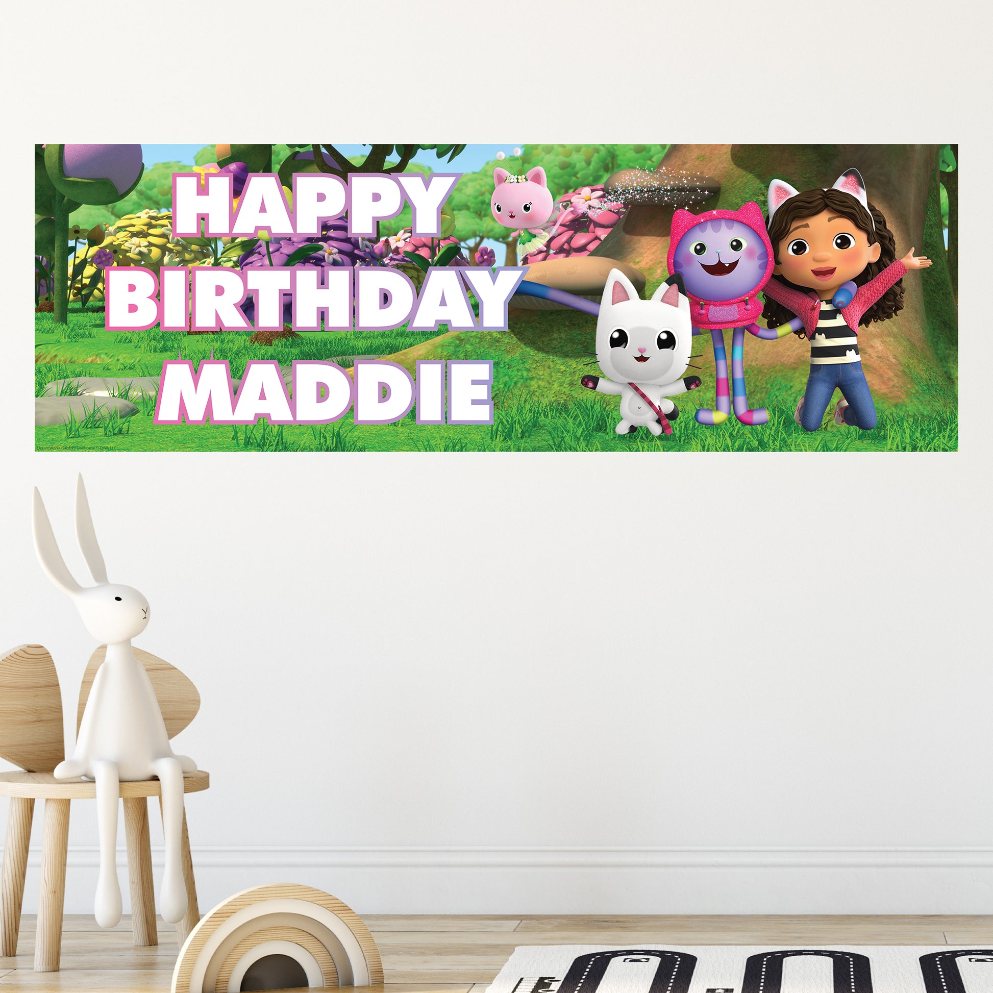 Perfect for fans of Gabby's Dollhouse, this customised birthday banner wall sticker is the ultimate birthday party decoration. Personalise it with your own message to celebrate in style and create memories they’ll never forget.