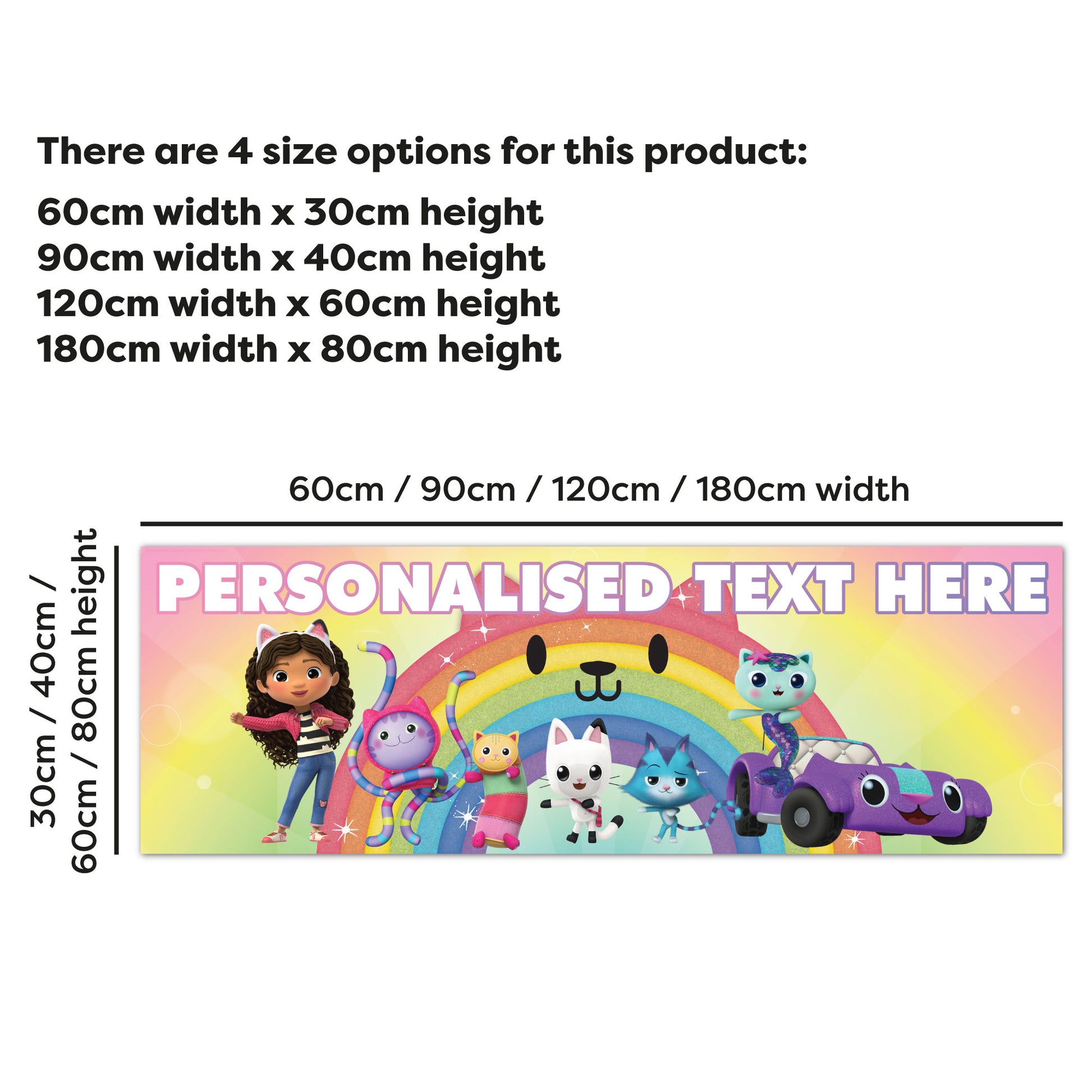 Perfect for fans of Gabby's Dollhouse, this customised birthday banner wall sticker is the ultimate birthday party decoration. Personalise it with your own message to celebrate in style and create memories they’ll never forget.