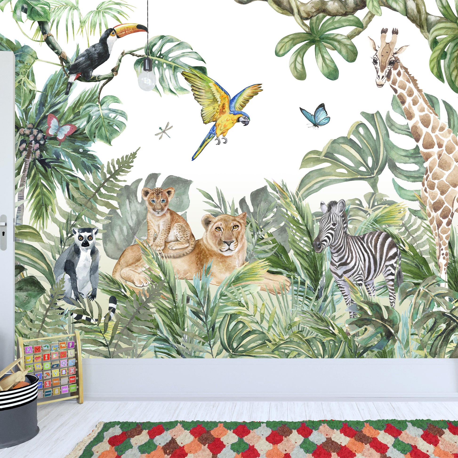 Contents: x1 Jungle Full Wall Mural - Animals in the Jungle Wall Art
