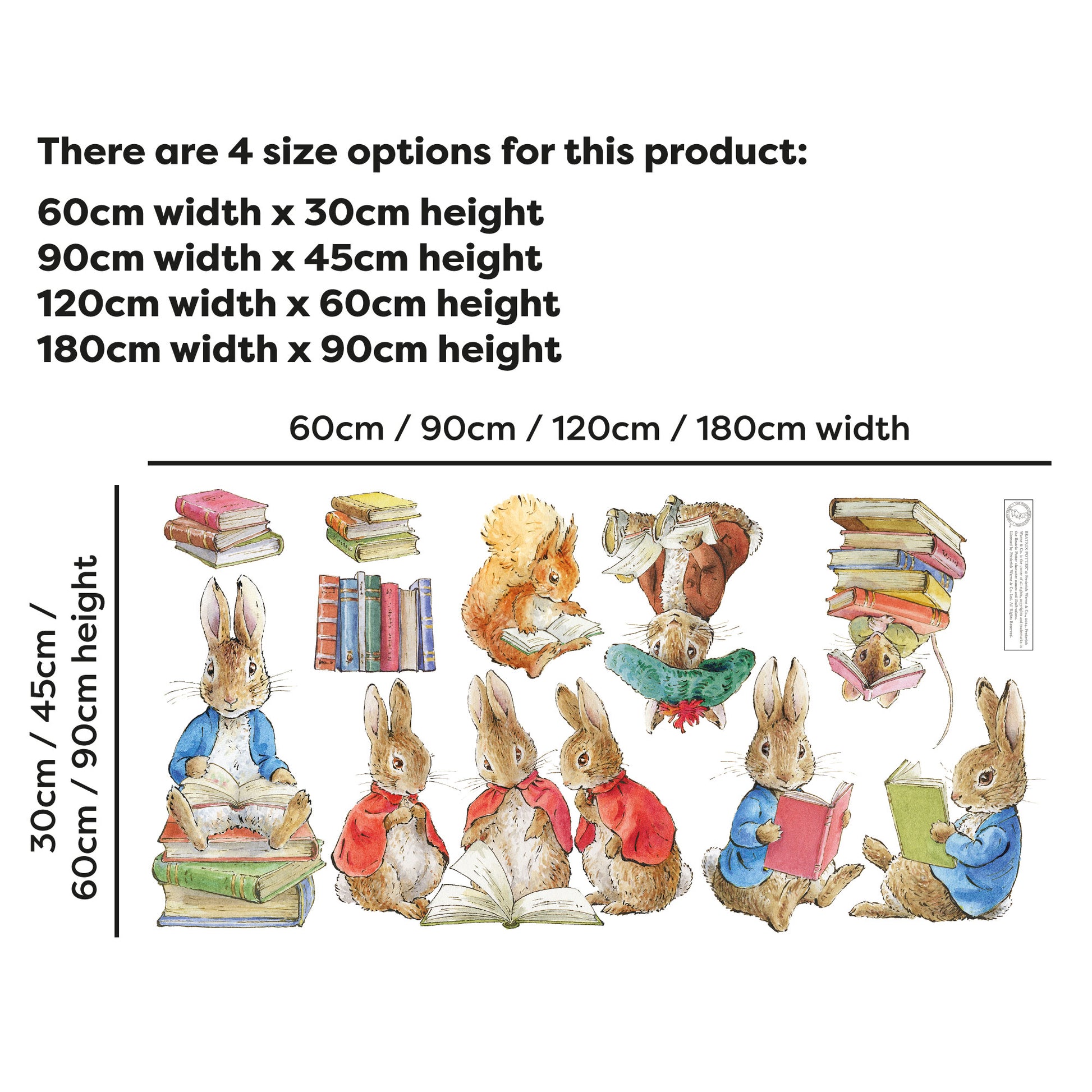Contents: x1 Official Peter Rabbit Wall Sticker - Peter Rabbit and Friends Reading Books Set Decal Wall Art (in your chosen size).