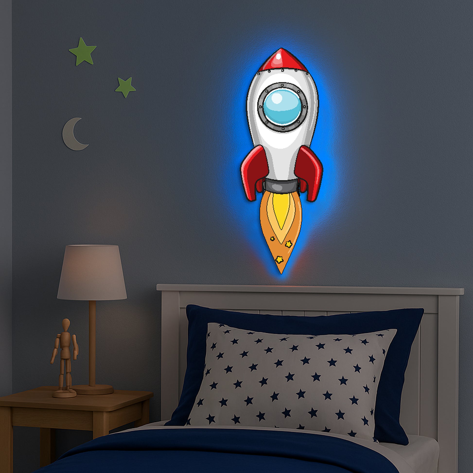 Transform your space with this Rocket With Flames LED Backlit Mounted Wall Art!