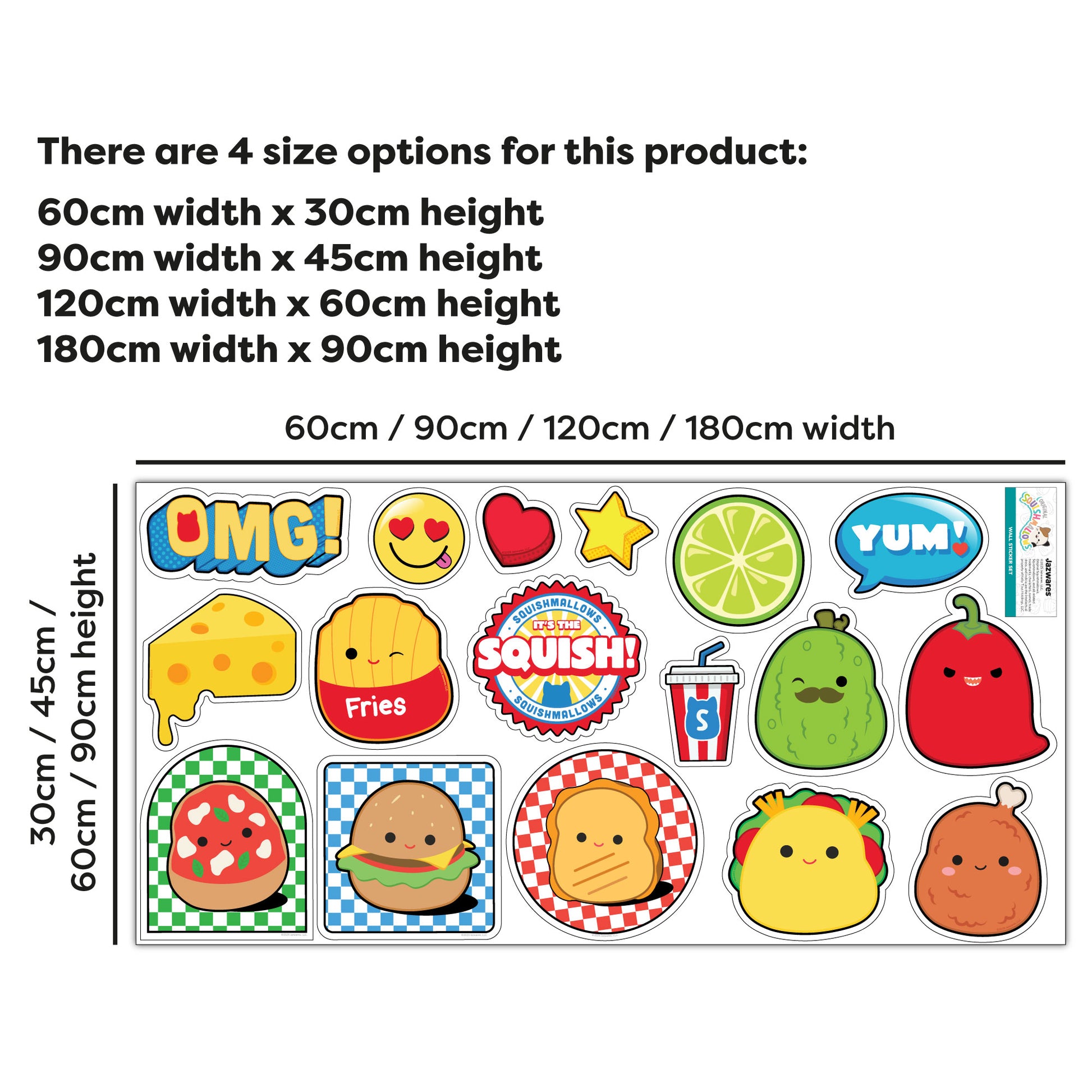 Contents: x1 Squishmallows Food Squad Wall Sticker Set (in your chosen size).