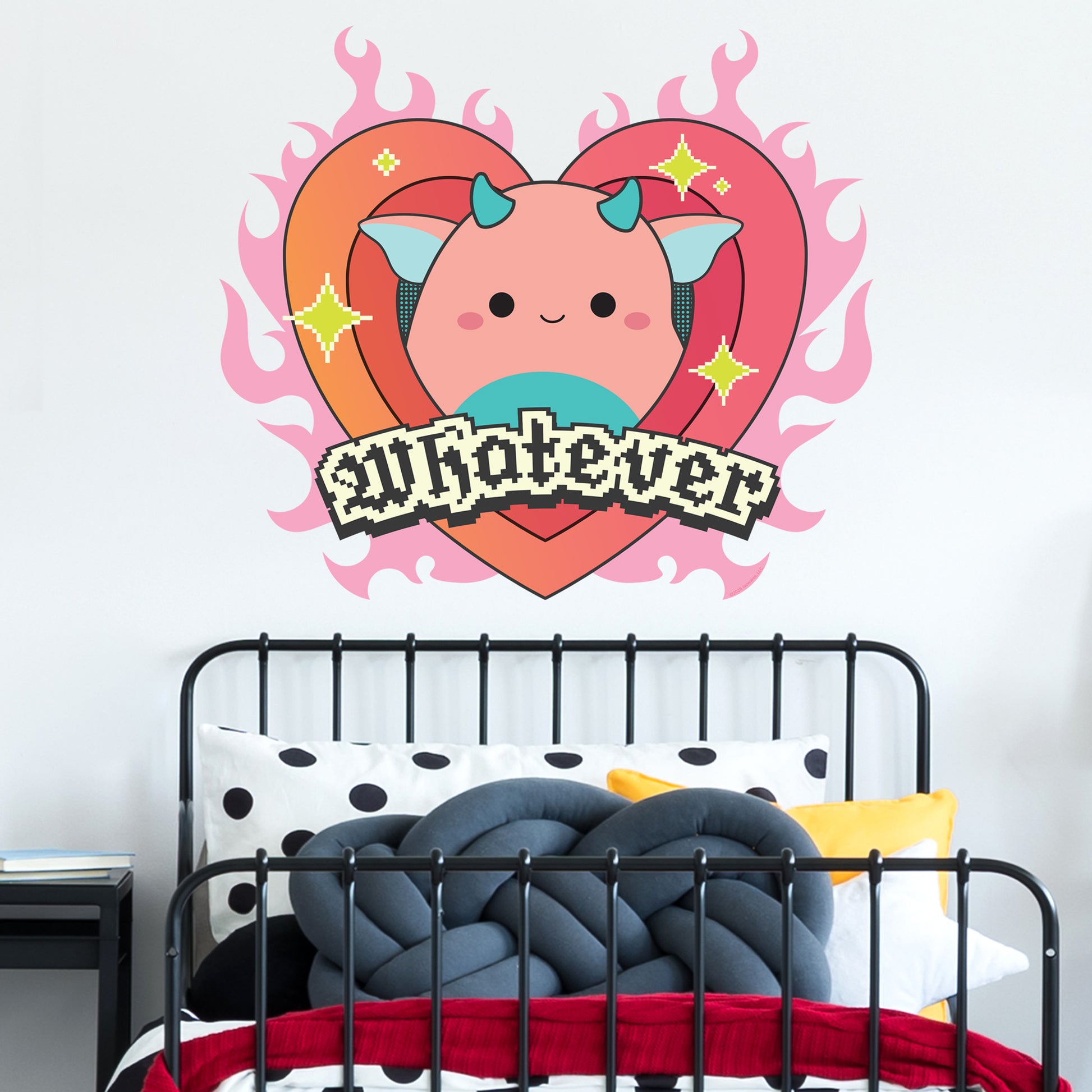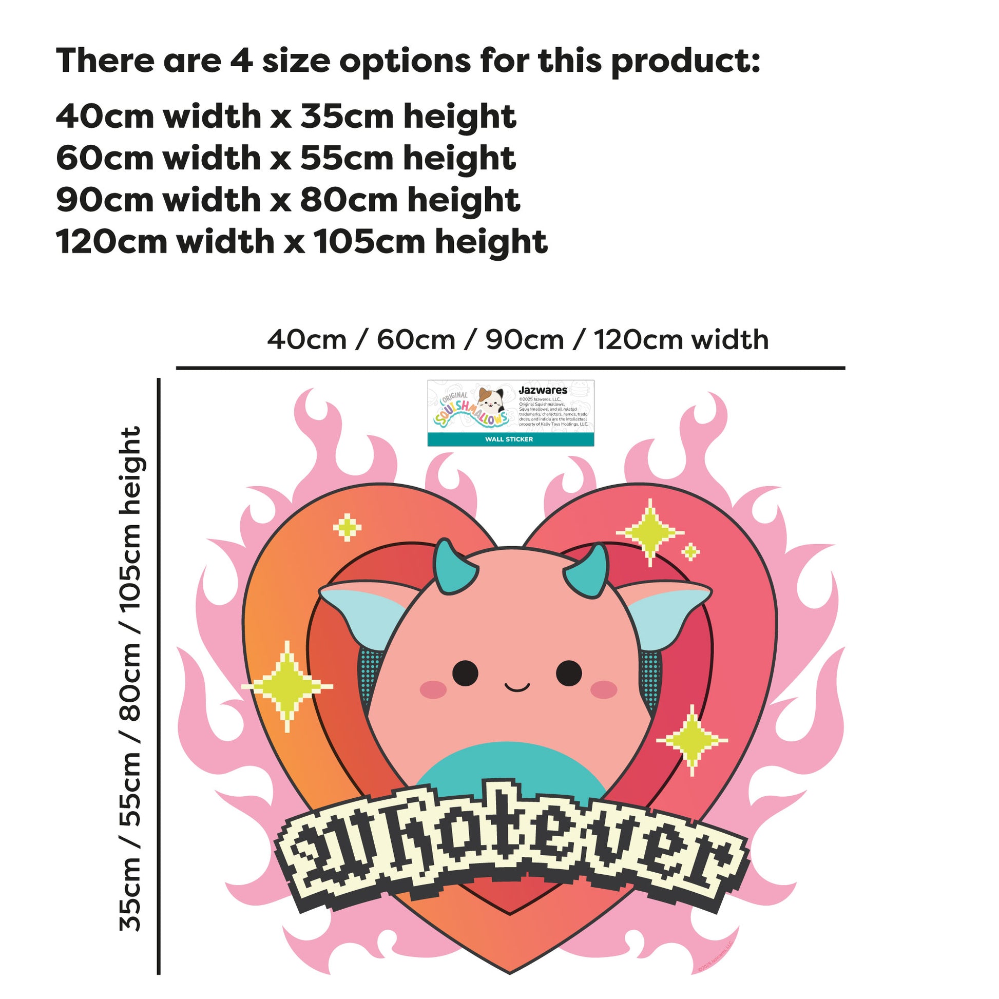 Contents: x1 Squishmallows Whatever Flaming Heart Wall Sticker (in your chosen size).