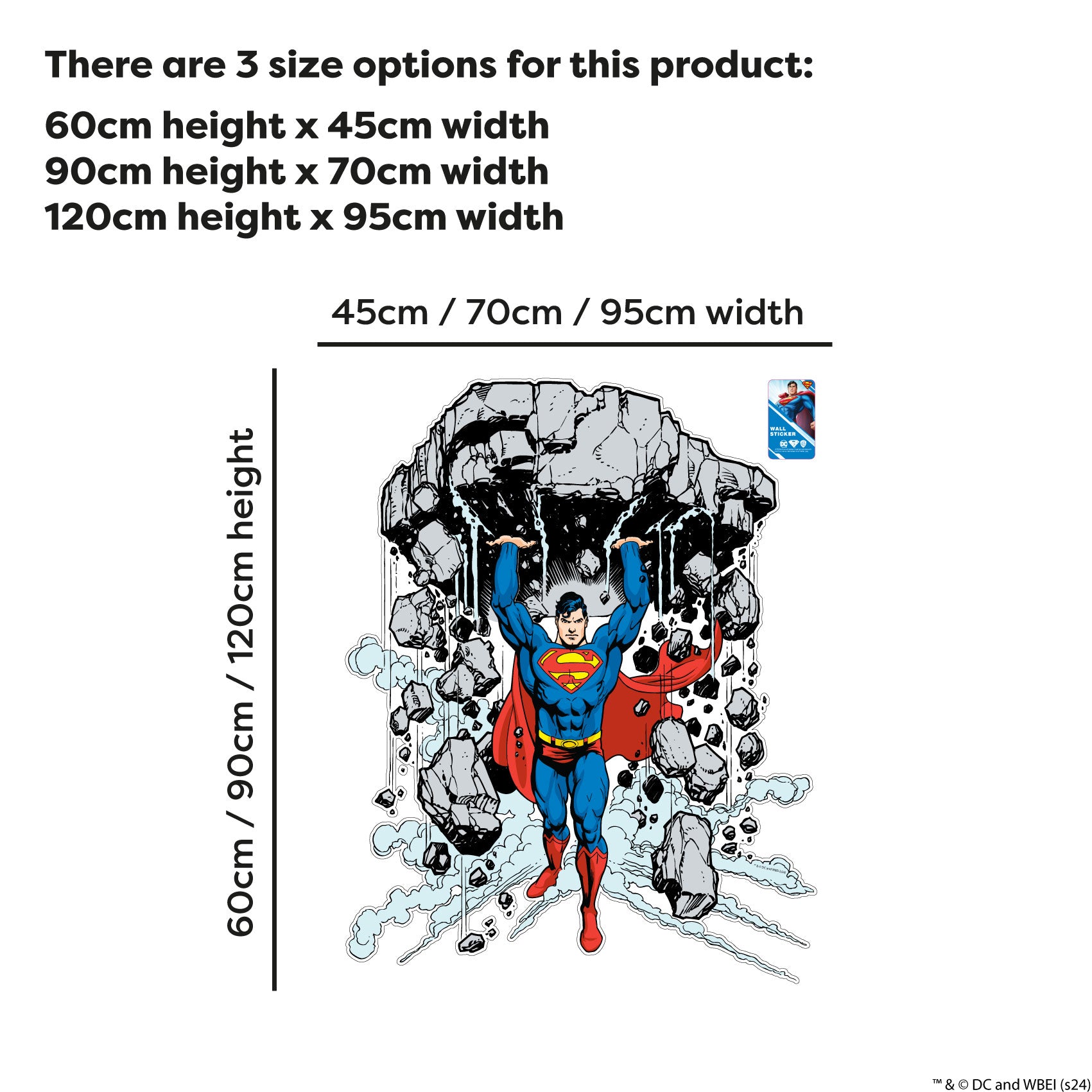 Contents: 1x Superman™ Lifting Rock Sketch Wall Sticker, plus fitting instructions.