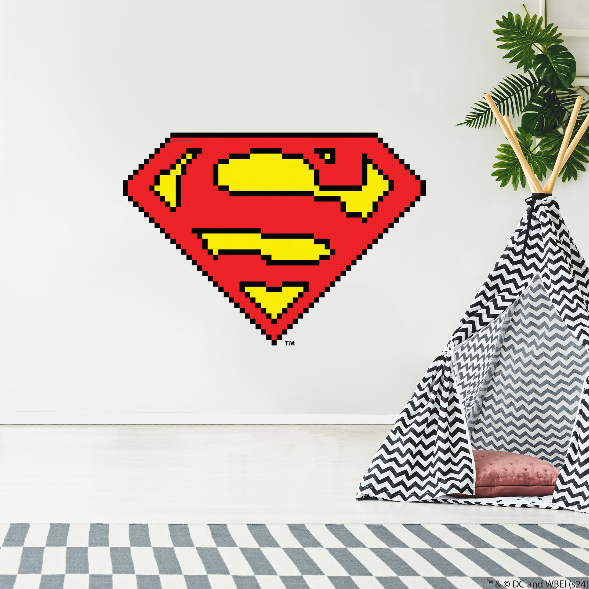 Superman Wall Sticker - Pixel Logo Wall Decal DC Superhero Art