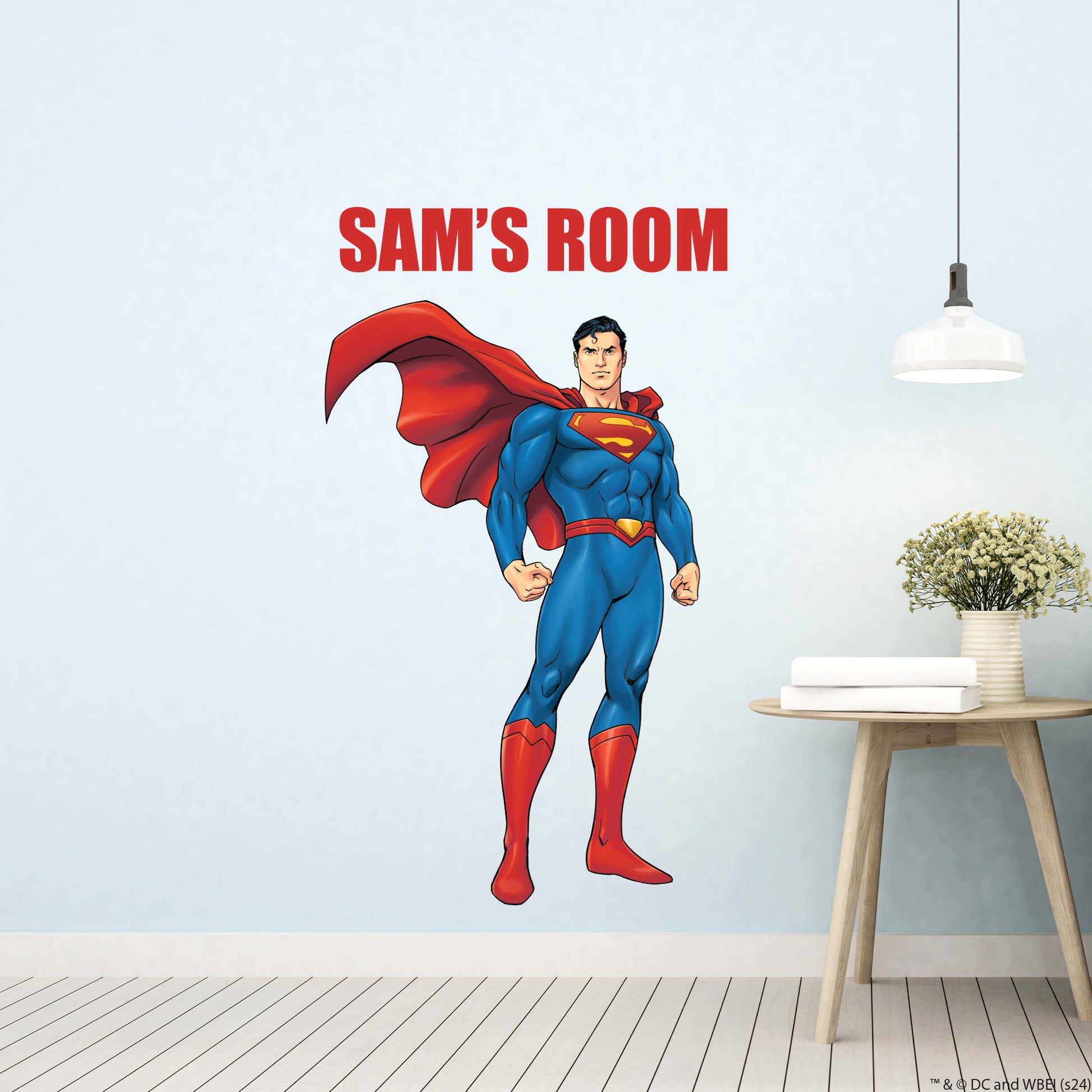 Contents: 1x Superman™ Stood with Cape Blowing Personalised Wall Sticker, plus fitting instructions.