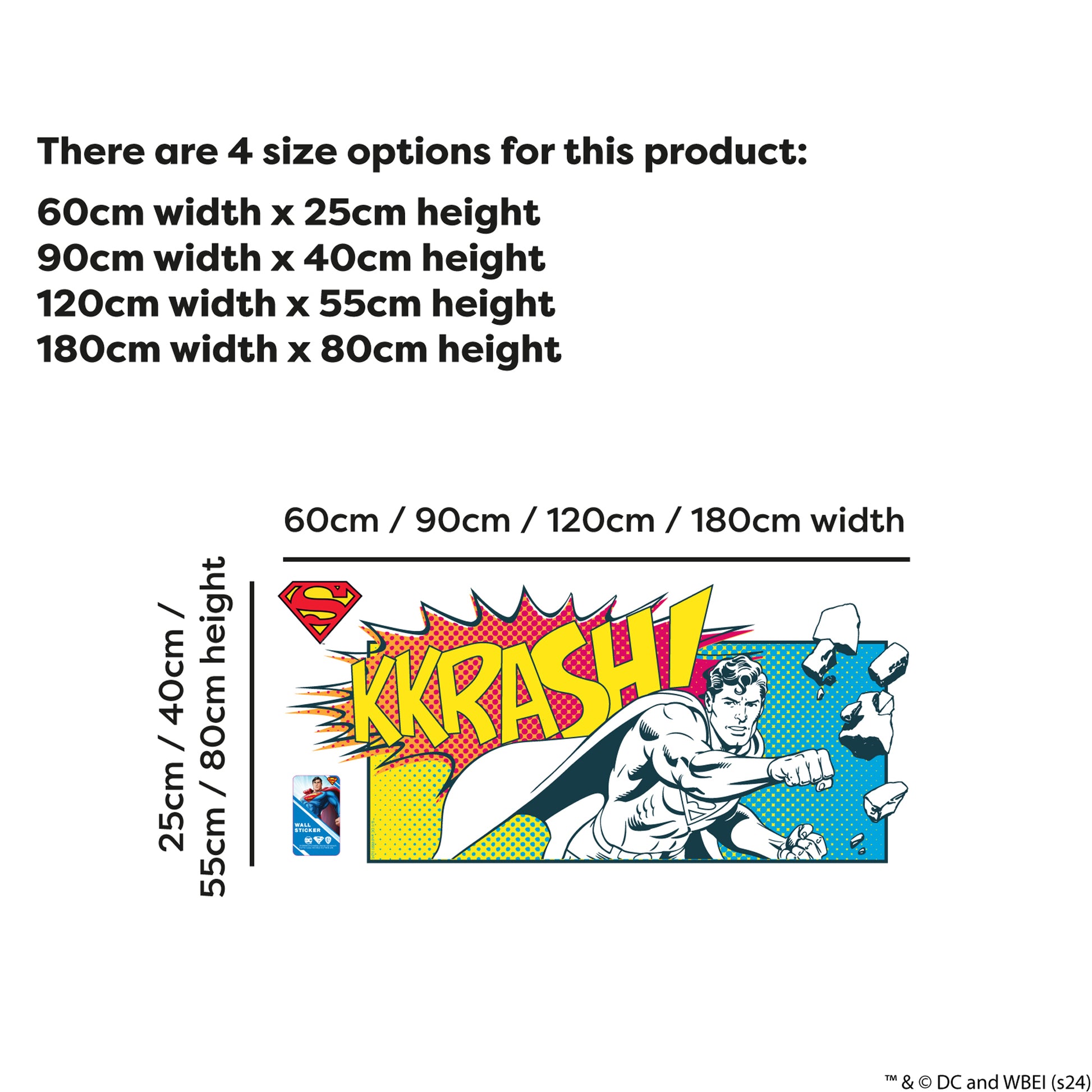 Contents: 1x Superman™ Kkrash Comic Strip Wall Sticker, plus fitting instructions.