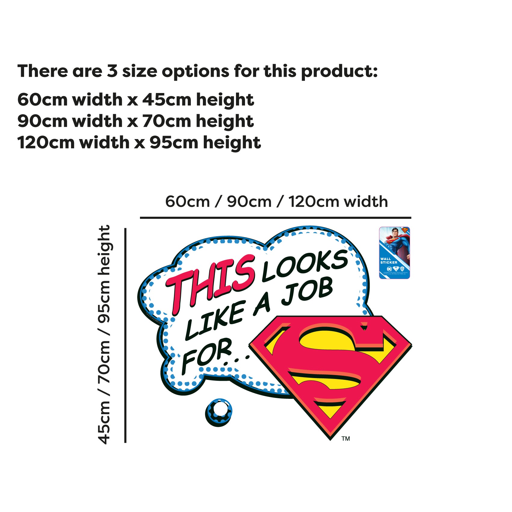 Contents: 1x Superman™ This Looks Like a Job For Superman Wall Sticker, plus fitting instructions.
