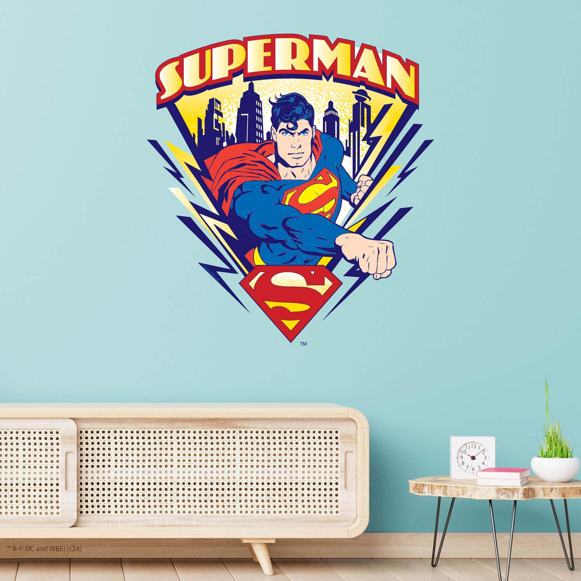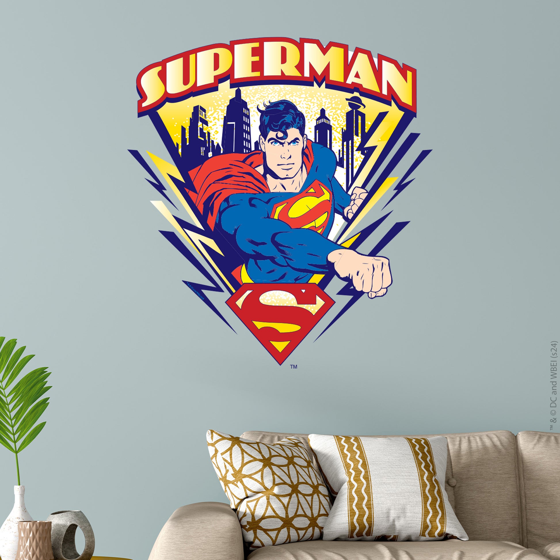 Suit up, citizens! Bring the power of Metropolis to your walls with our licensed Superman™ wall stickers! Soar into action with classic designs featuring the Man of Steel™, the iconic shield and more. These high-quality decals are easy to apply and remove, letting you create a dynamic Superman scene on any wall. Make your room a Fortress of Solitude™ – get your Superman wall stickers!