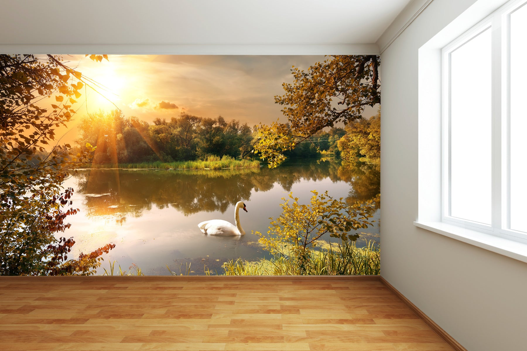 Swan in Lake Wall Mural