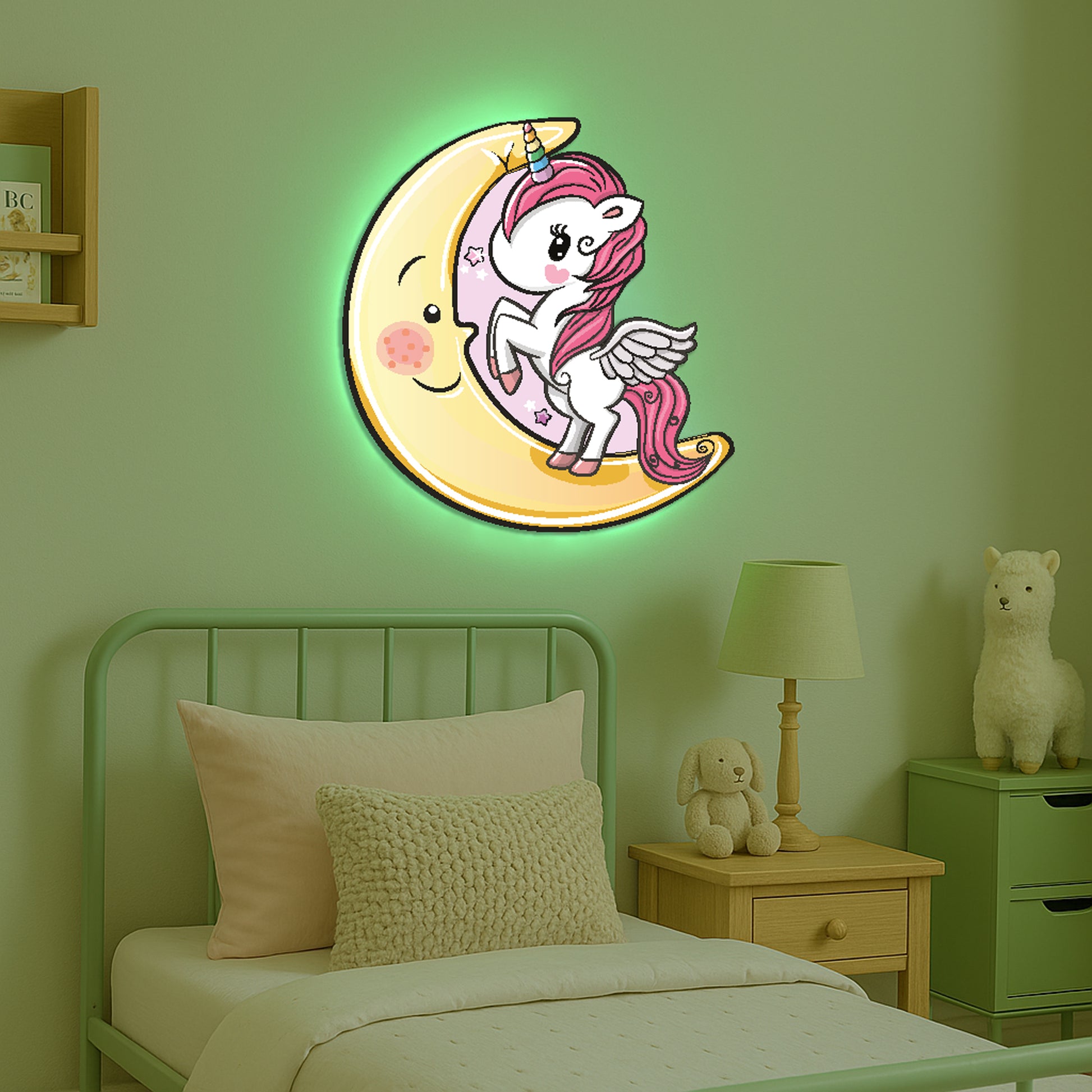 Transform your space with this Unicorn and Moon LED Backlit Mounted Wall Art!